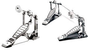 Les doubles pédales permettent de frapper la grosse caisse avec les deux pieds.