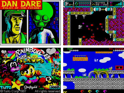de présentation de Dan Dare, 12 couleurs ; premier tableau de Cybernoid,