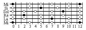 Gamme Pentatonique Mineure de Mi (cliquez pour écouter)