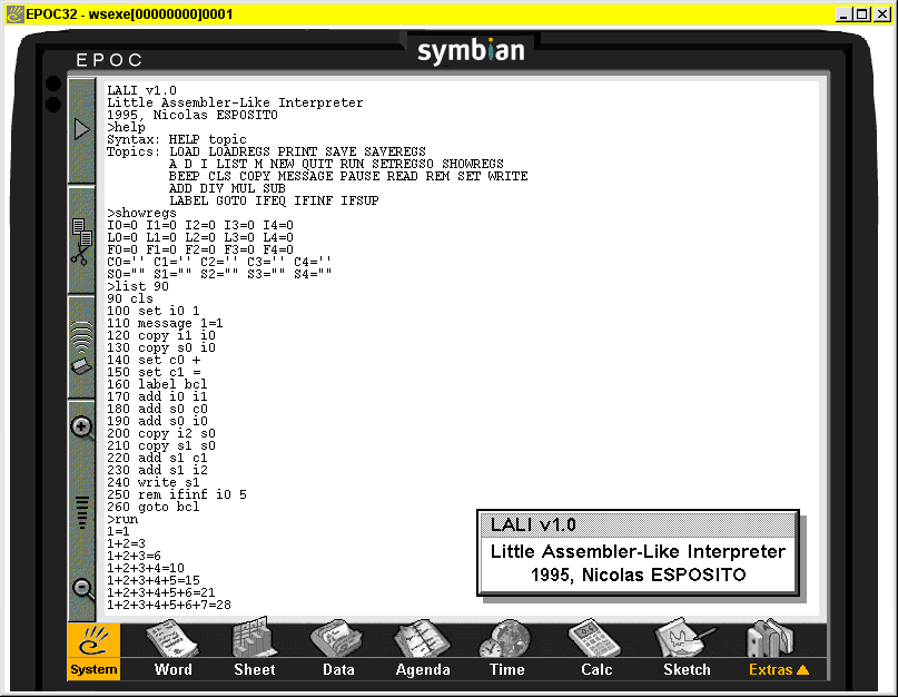 ![]() LALI : langage de programmation pour Psion/EPOC |