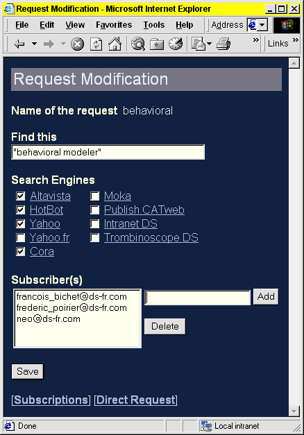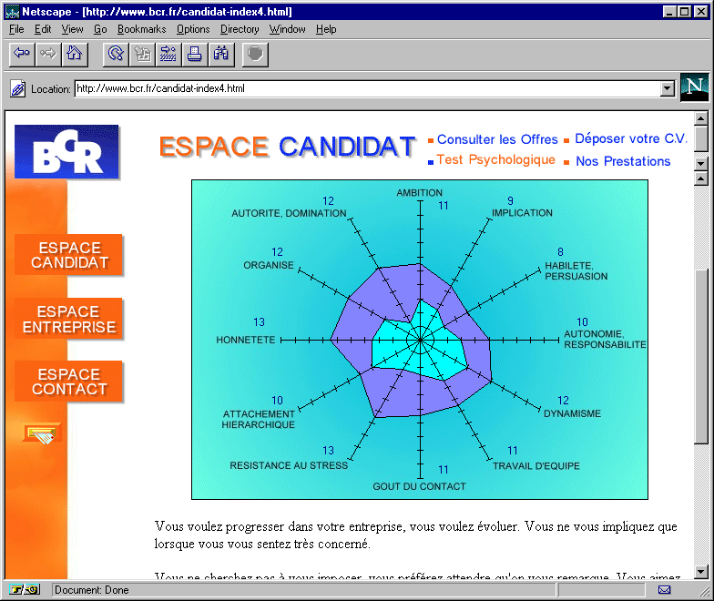 ![]() Saturne : application Web Java et Perl (site Web, Test psychologique) |