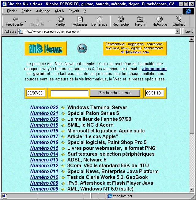 ![]() Nik's News : bulletin d'informations sur l'in- formatique (site Web) |
